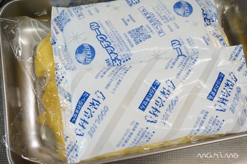 ★綺麗にカットする方法:波刃包丁を直火にかざし(もしくは熱湯をかけて)温めて、小刻みに前後させながらカットする。