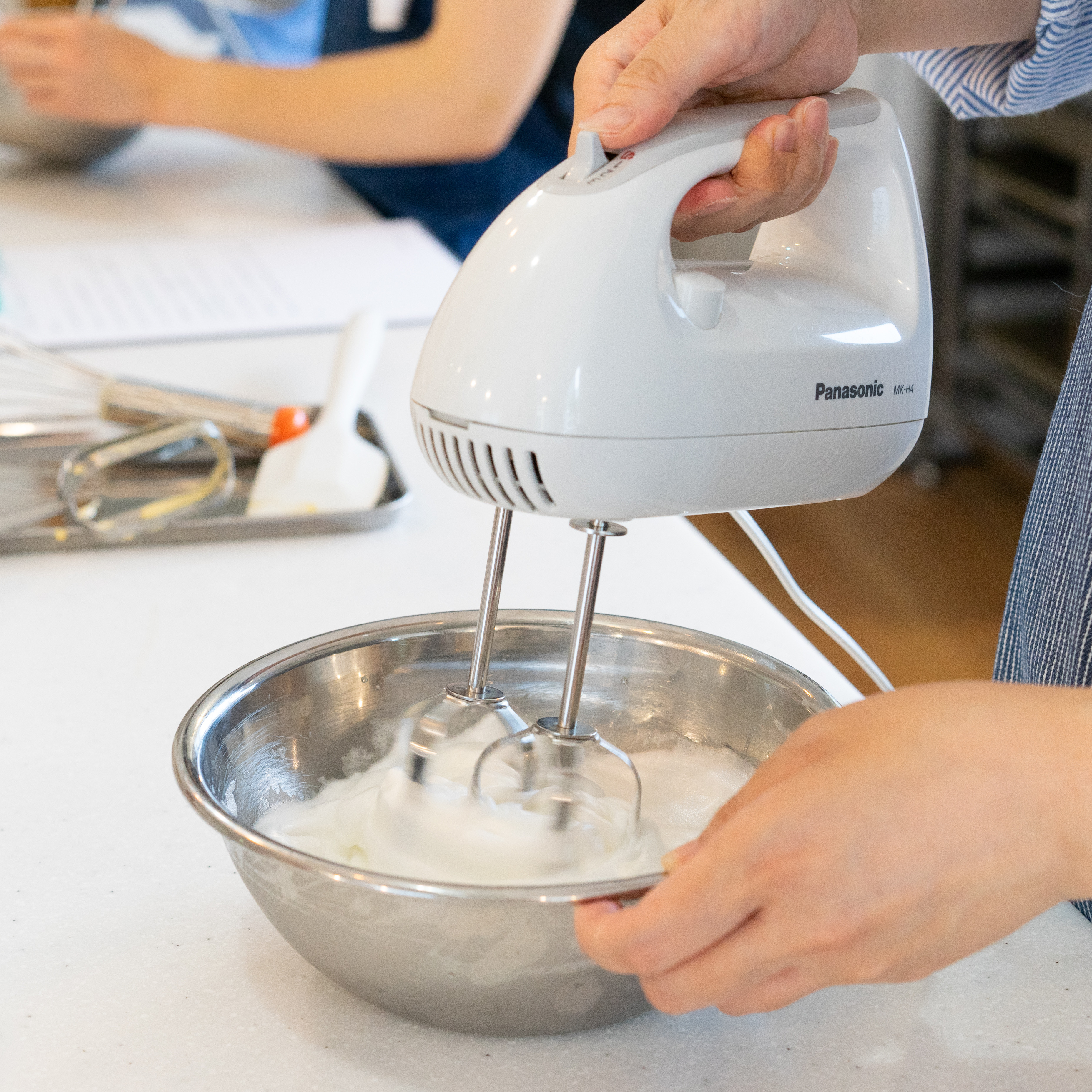 ハンドミキサーを使って泡だてます。