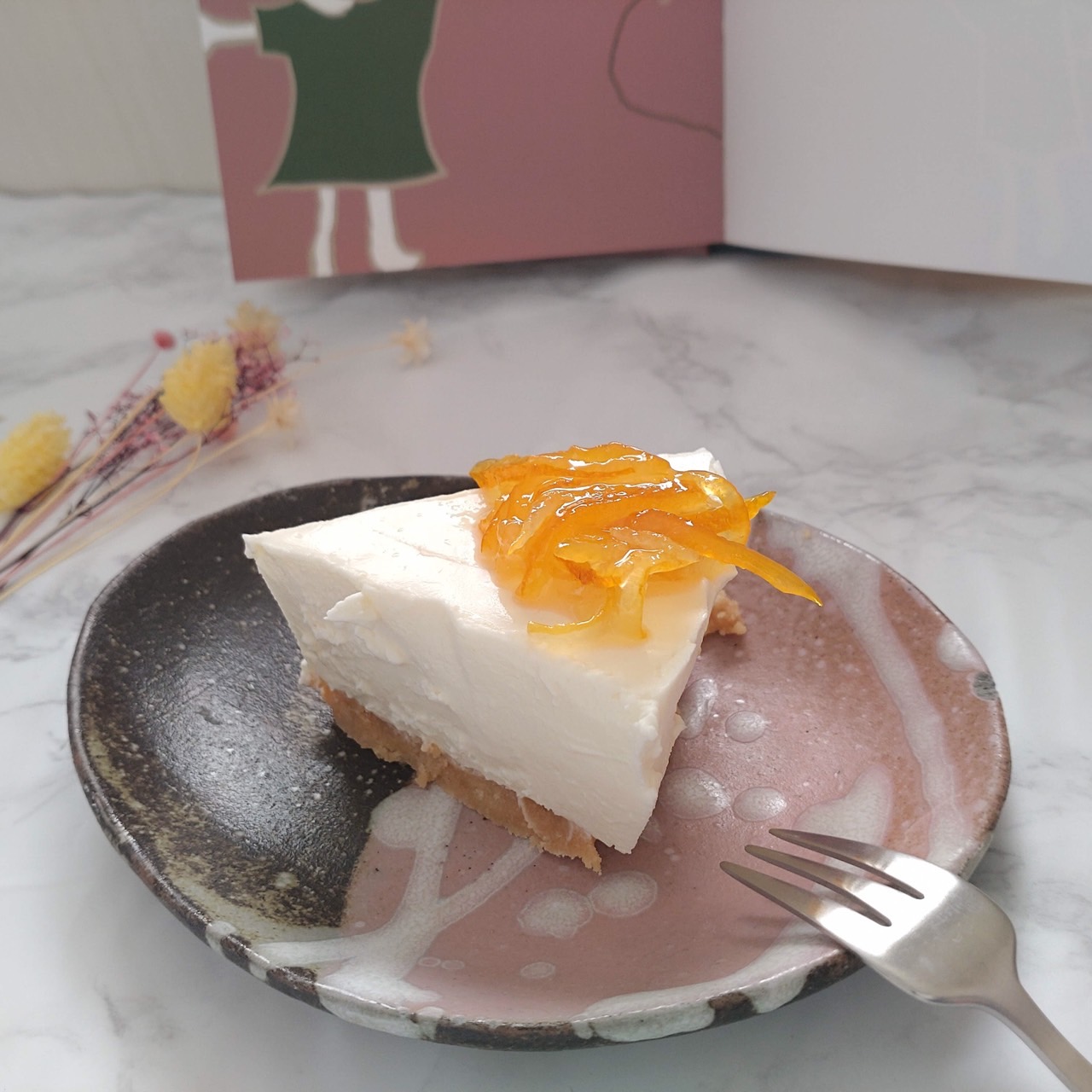 今回のチーズケーキのオレンジがキラっと撮れたのがうれしかったです。
