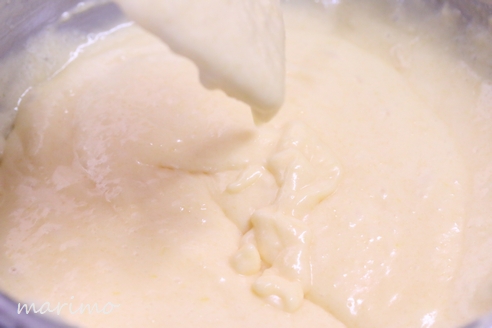 3)レモンの皮をすりおろして加え、混ぜる。